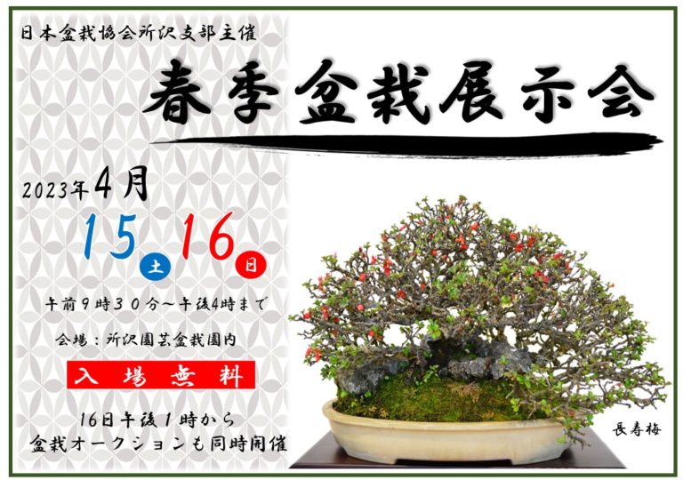 今年も春の盆栽展示会を行います。 20席前後の出品を予定してお … 続きを読む 2023春の盆栽展示会開催♪